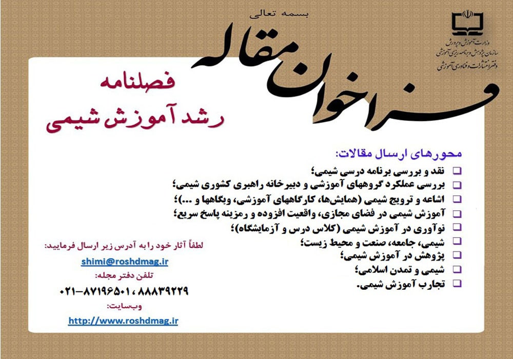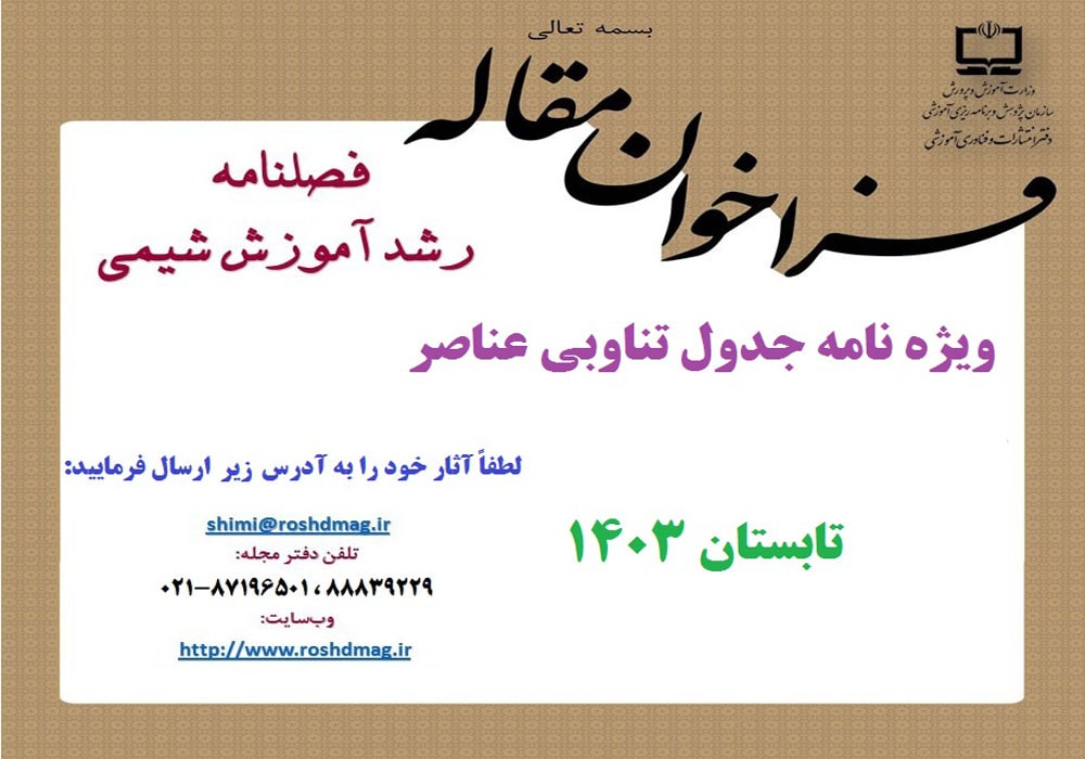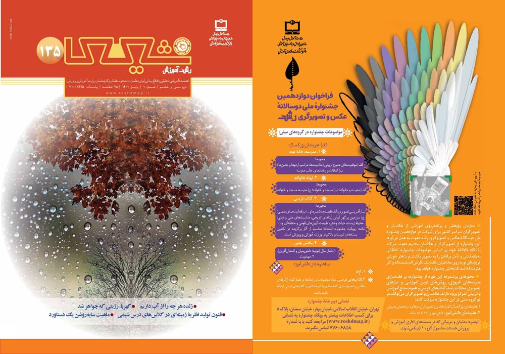گفتوگو نگرش کاربردی و عملی در آموزش شیمینوآوری و خلاقیت پیش رانش تدریس برترشوق معلمی علاقه وافر میطلبدتدریس شیمی با عشق و علاقه تازههای شیمی تازههای شیمیتازههای شیمیتازههای شیمیتازههای شیمی آموزش شیمی در جهان امروز یاددهی و یادگیری مفاهیم علوم تجربی از طریق نقشههای مفهومیجایگاه پژوهش در آموزش شیمینصف جهان و واگذاری میزبانی به فضای مجازینقدی کوتاه بر آموزش در شبکه شاد شیمی در بستر تاریخ طراحی با نورکهربا، رزینی که جواهر شدسرگذشت چندسازههادر اسارت ۳۰ قرن پنهان کاری