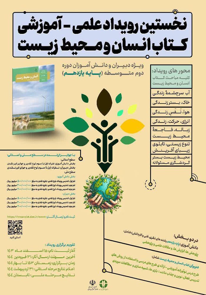 علاقهمندان میتوانند برای کسب اطلاعات بیشتر و ثبت نام در این رویداد به وبگاه https://ensanzist.doe.ir/event مراجعه فرمایند.