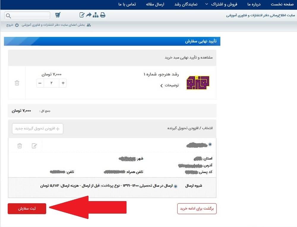 مجلات خریداری شده به آدرس و کدپستی قید شده در این فرم ارسال خواهد شد. از وارد کردن آدرس و کدپستی نامعتبر خودداری فرمایید.