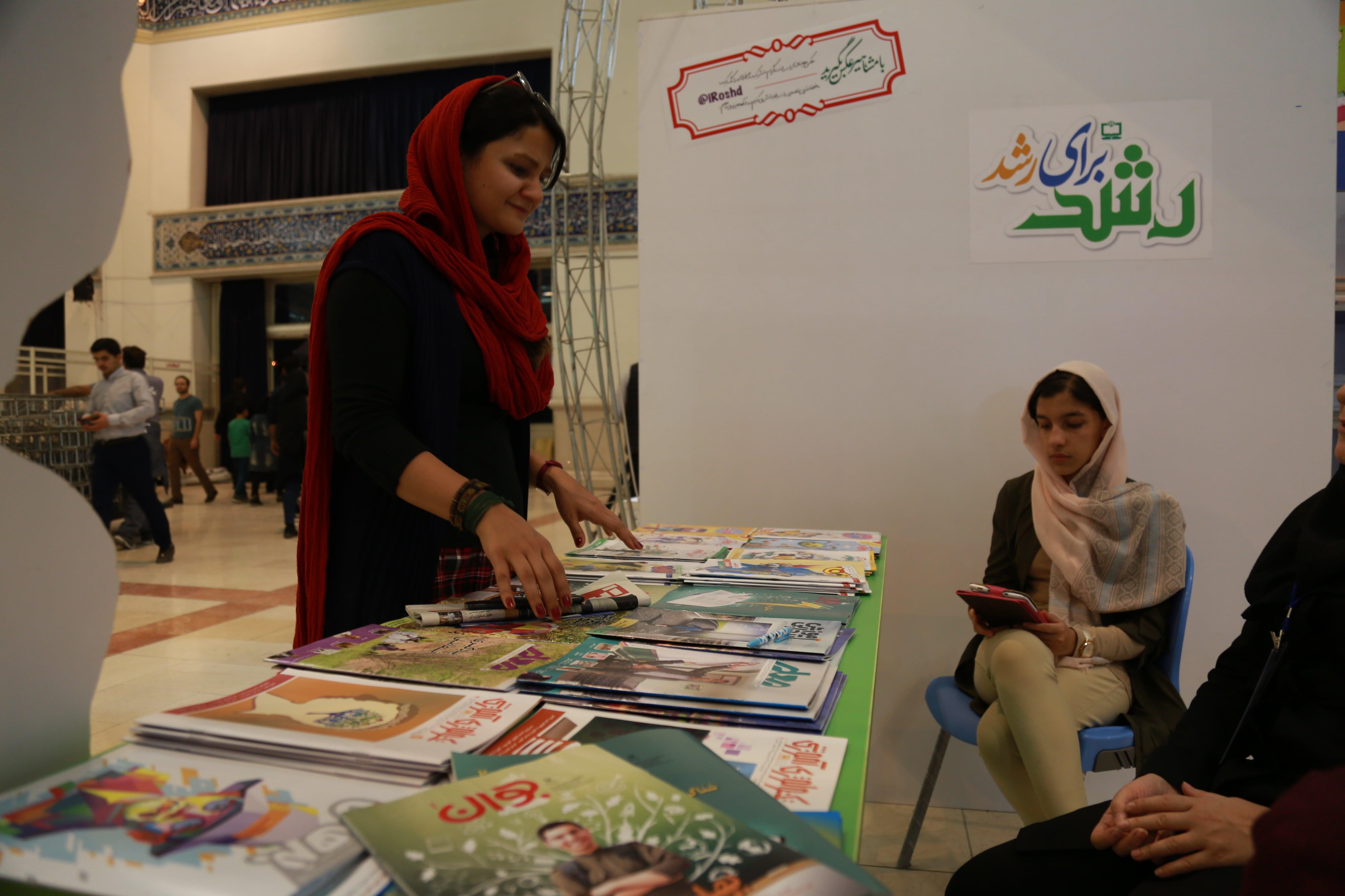 بیست و سومین نمایشگاه مطبوعات تهران؛ آبان ۱۳۹۶، مصلی امام خمینی (ره) غرفه مجلات رشد در بیستوسومین نمایشگاه مطبوعات؛ آبان ۱۳۹۶ تاریخ: ۷ آبان ۱۳۹۶ عکاس: غلامرضا بهرامی؛ شادی رضائی