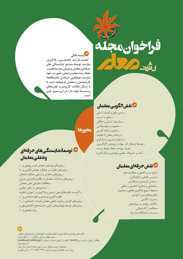 خبر افزود: کیفیت فرایند یاددهی یادگیری، نیازمند توسعه مستمر شایستگیهای حرفهای معلمان و مربیان مدرسههاست. بر این اساس مجله رشد معلم براساس
