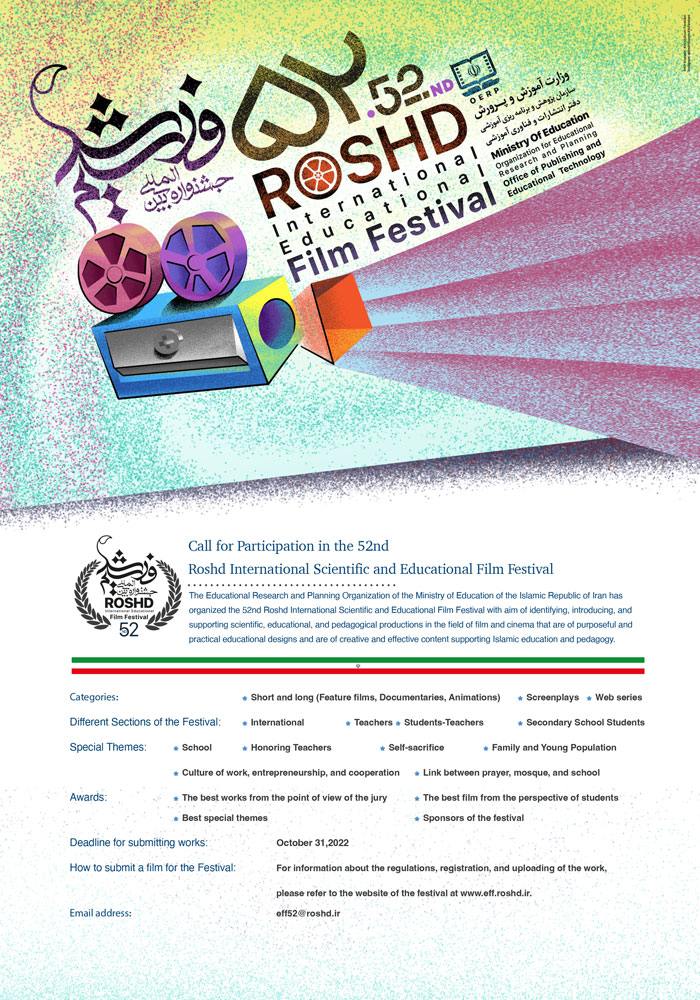 گفتنی است، پنجاه و دومین دوره جشنواره بینالمللی فیلمهای علمی، آموزشی و تربیتی رشد، هفتم تا سیزدهم آذرماه 1401 در مجتمع فرهنگی سینما فلسطین برگزار خواهد شد و پس از آن آثار برگزیده در سراسر کشور برای مدارس به اکران در خواهد آمد.