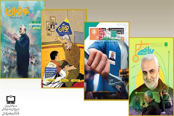 به گزارش واحد خبر و رسانه دفتر انتشارات و فناوری آموزشی، ماهنامههای آموزشی و تربیتی رشد نوجوان، رشد جوان، رشد هنرجو و رشد برهان ریاضی دوره اول متوسطه، از گروه ماهنامههای ویژه دانشآموزان دوره متوسطه، که سازمان پژوهش و برنامهریزی آموزشی آنها را به عنوان جزئی از بستههای تربیت و یادگیری، در چارچوب اهداف نظام آموزشوپرورش جمهوری اسلامی ایران تولید و منتشر میکند، در چهارمین شماره از سال تحصیلی جاری، که در دیماه به دست مخاطبانشان رسیدهاند، مطالبی را با نگاه ویژه به سالگرد شهادت سیدالشهدای مدافعان حرم، سردار شهید حاج قاسم سلیمانی، و مزین به نام این سردار رشید اسلام، چاپ و منتشر کردند.