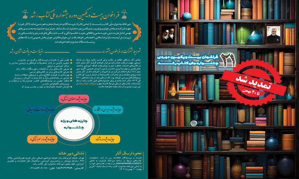 دبیرخانه جشنواره ملّی کتاب رشد، از تمدید مهلت ارسال آثار در بخش جوایز ویژه بیست‌ویکمین دوره جشنواره ملی کتاب رشد خبر داد.