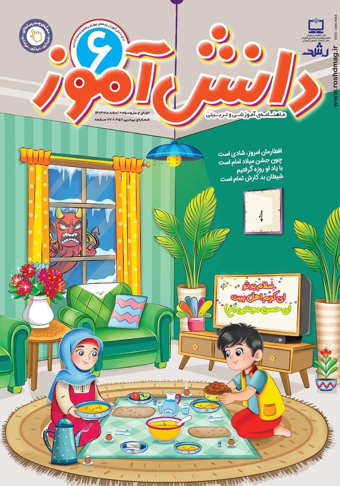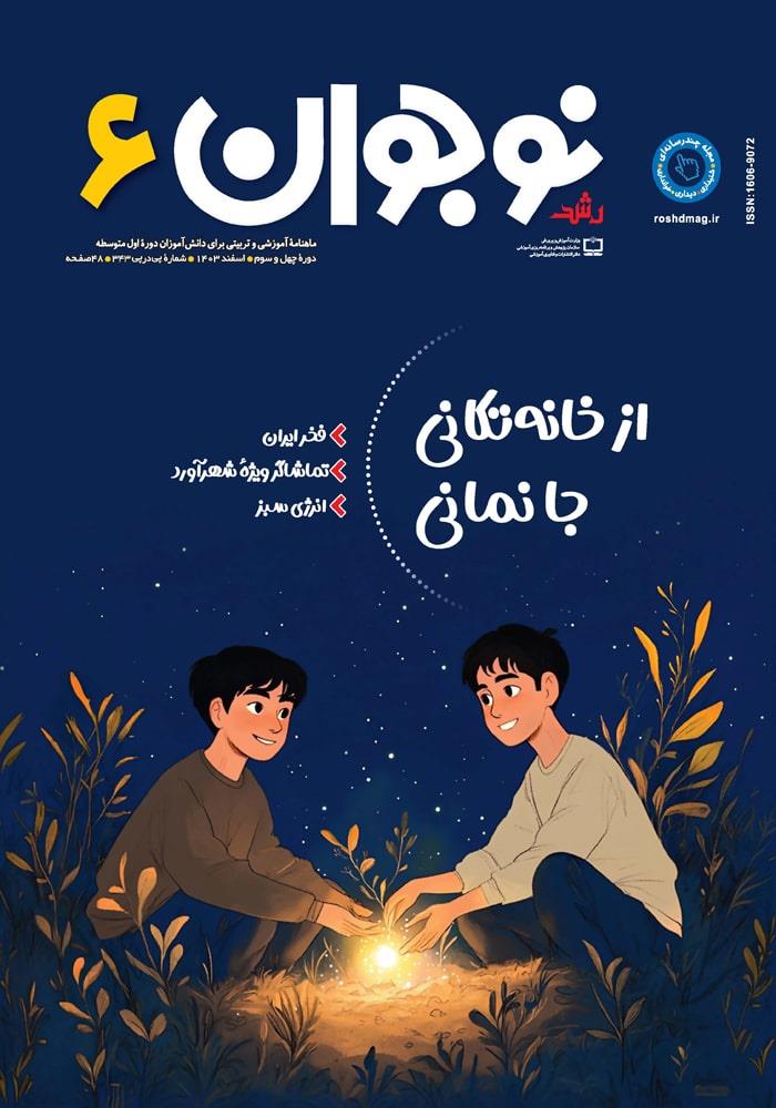«از خانه تکانی جا نمانی»؛ «تماشاگر ویژه شهرآورد»؛ «انرژی سبز»؛ «فخر ایران»؛ «خوره رایانه»؛ «بازخورد و بهبود مستمر محصول»؛ «طبیب ماهر»؛ «تنبل خیالباف» و... از دیگر مطالبی هستند که در ششمین شماره رشد نوجوان در اسفندماه 1403 برای دانشآموزان دوره متوسطه اول منتشر شدهاند.