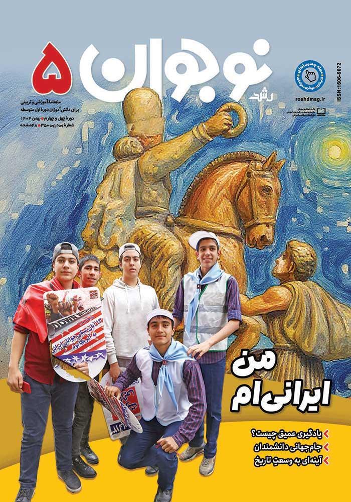 رشد نوجوان در بهمن 1404 در مطلبی با عنوان «ما ایرانیم» با مخاطبان این مجله تلاشهای دشمنان برای شکست انقلاب اسلامی را برای نوجوانان تبیین کرده و تلاشهای متقابل نوجوانان و مردم برای بالا بردن دانش و مهارتها در عرصههای علمی، هنری، ورزشی و ایمانی به منظور به اهتزاز درآوردن پرچم ایران اسلامی در این عرصهها را یادآوری نموده است.