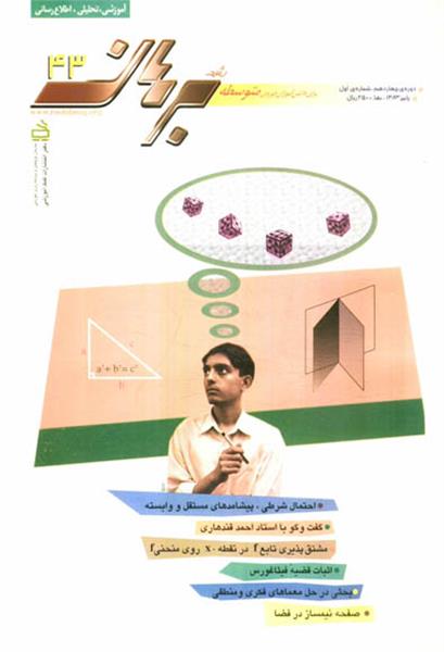 درباره رشد برهان ریاضی دوره متوسطه شماره 41؛ 1382 3,576.7 KB ۲۰ فروردین ۱۳۹۲ بازدید: ۱۱,۰۱۰ شماره 69؛ بهار 1390 3,447.1 KB ۱۱ دی ۱۳۹۱ بازدید: ۹,۰۷۰ شماره 1؛ 1370 2,970.4 KB ۱۱ دی ۱۳۹۱ بازدید: ۹,۱۶۱ شماره 2؛ بهار 1371 4,184.7 KB ۱۱ دی ۱۳۹۱ بازدید: ۸,۱۶۷ شماره 3؛ تابستان 1371 3,479.4 KB ۱۱ دی ۱۳۹۱ بازدید: ۸,۵۰۱ شماره 4؛ پاییز 1371 3,511.5 KB ۱۱ دی ۱۳۹۱ بازدید: ۸,۲۴۳ شماره 5؛ زمستان 1371 3,716.1 KB ۱۱ دی ۱۳۹۱ بازدید: ۷,۶۸۹ شماره 6؛ بهار 1372 3,565.9 KB ۱۱ دی ۱۳۹۱ بازدید: ۷,۵۰۵ شماره 7؛ تابستان 1372 3,896.4 KB ۱۱ دی ۱۳۹۱ بازدید: ۷,۶۷۹ شماره 8؛ پاییز 1372 4,418.5 KB ۱۱ دی ۱۳۹۱ بازدید: ۷,۴۹۷ شماره 9؛ زمستان 1372 3,741.8 KB ۱۱ دی ۱۳۹۱ بازدید: ۷,۲۹۷ شماره 10؛ 1373 3,885.1 KB ۱۱ دی ۱۳۹۱ بازدید: ۷,۹۷۶ شماره 11؛ پاییز 1373 3,855.4 KB ۱۱ دی ۱۳۹۱ بازدید: ۷,۴۸۲ شماره 12؛ زمستان 1373 4,855.3 KB ۱۱ دی ۱۳۹۱ بازدید: ۷,۱۳۶ شماره 13؛ بهار 1374 3,851.6 KB ۱۱ دی ۱۳۹۱ بازدید: ۷,۵۶۸ شماره 14؛ تابستان 1374 4,007.8 KB ۱۱ دی ۱۳۹۱ بازدید: ۷,۵۲۹ شماره 15؛ پاییز 1374 4,135.4 KB ۱۱ دی ۱۳۹۱ بازدید: ۷,۳۶۵ شماره 16؛ زمستان 1374 3,927.8 KB ۱۱ دی ۱۳۹۱ بازدید: ۷,۳۰۷ شماره 17؛ بهار 1375 4,200.6 KB ۱۱ دی ۱۳۹۱ بازدید: ۷,۳۴۱ شماره 18؛ پاییز 1375 4,191.2 KB ۱۱ دی ۱۳۹۱ بازدید: ۷,۰۶۸ شماره 19؛ زمستان 1375 4,504.9 KB ۱۱ دی ۱۳۹۱ بازدید: ۷,۲۴۱ شماره 20؛ بهار 1376 4,163.9 KB ۱۱ دی ۱۳۹۱ بازدید: ۷,۳۶۳ شماره 21؛ تابستان 1376 4,254.1 KB ۱۱ دی ۱۳۹۱ بازدید: ۷,۱۸۶ شماره 22؛ پاییز 1376 4,598, KB ۱۱ دی ۱۳۹۱ بازدید: ۷,۴۹۱ شماره 23؛ زمستان 1376 4,340.4 KB ۱۱ دی ۱۳۹۱ بازدید: ۷,۱۰۲ شماره 24؛ بهار 1377 4,221.4 KB ۱۱ دی ۱۳۹۱ بازدید: ۷,۲۱۵ شماره 25؛ تابستان 1377 4,391.4 KB ۱۱ دی ۱۳۹۱ بازدید: ۷,۰۰۵ شماره 26؛ پاییز 1377 4,014.9 KB ۱۱ دی ۱۳۹۱ بازدید: ۷,۲۴۱ شماره 27؛ زمستان 1377 4,818.9 KB ۱۱ دی ۱۳۹۱ بازدید: ۶,۷۳۶ شماره 28؛ بهار 1378 5,020.1 KB ۱۱ دی ۱۳۹۱ بازدید: ۷,۳۳۵ شماره 29؛ 1378 6,065.8 KB ۱۱ دی ۱۳۹۱ بازدید: ۷,۲۳۲ شماره 30؛ پاییز 1378 5,373.5 KB ۱۰ دی ۱۳۹۱ بازدید: ۶,۹۵۳ شماره 31؛ زمستان 1378 5,365.8 KB ۱۰ دی ۱۳۹۱ بازدید: ۷,۲۸۸ شماره 32؛ بهار و تابستان 1379 5,062.3 KB ۱۰ دی ۱۳۹۱ بازدید: ۷,۱۶۸ شماره 33؛ پاییز 1379 4,396.3 KB ۱۰ دی ۱۳۹۱ بازدید: ۷,۰۲۵ شماره 34؛ بهار 1380 2,933.7 KB ۱۰ دی ۱۳۹۱ بازدید: ۷,۱۶۵ شماره 35؛ تابستان و پاییز 1380 2,893.4 KB ۱۰ دی ۱۳۹۱ بازدید: ۷,۴۵۰ شماره 36؛ زمستان 1380 2,944.8 KB ۱۰ دی ۱۳۹۱ بازدید: ۷,۱۶۵ شماره 37؛ 1381 3,574, KB ۱۰ دی ۱۳۹۱ بازدید: ۶,۸۰۲ شماره 38؛ 1381 3,636.7 KB ۱۰ دی ۱۳۹۱ بازدید: ۷,۳۷۷ شماره 39؛ 1382 3,341.1 KB ۱۰ دی ۱۳۹۱ بازدید: ۷,۵۵۶ شماره 40؛ 1382 3,590.8 KB ۱۰ دی ۱۳۹۱ بازدید: ۷,۴۷۴ شماره 42؛ بهار و تابستان 1383 4,021.6 KB ۱۰ دی ۱۳۹۱ بازدید: ۷,۴۳۷ شماره 43؛ پاییز 1383 4,671.4 KB ۱۰ دی ۱۳۹۱ بازدید: ۷,۲۰۹ شماره 44؛ زمستان 1383 5,315, KB ۱۰ دی ۱۳۹۱ بازدید: ۷,۴۳۹ شماره 45؛ بهار 1384 4,897.6 KB ۱۰ دی ۱۳۹۱ بازدید: ۷,۱۰۲ شماره 46؛ تابستان 1384 4,720.5 KB ۱۰ دی ۱۳۹۱ بازدید: ۷,۰۳۲ شماره 47؛ پاییز 1384 4,970.7 KB ۱۰ دی ۱۳۹۱ بازدید: ۶,۷۵۲ شماره 48؛ زمستان 1384 4,863, KB ۱۰ دی ۱۳۹۱ بازدید: ۶,۹۶۲ شماره 49؛ بهار 1385 4,860.9 KB ۱۰ دی ۱۳۹۱ بازدید: ۶,۷۷۶ شماره 50؛ تابستان 1385 4,713.2 KB ۱۰ دی ۱۳۹۱ بازدید: ۶,۶۲۳ شماره 51؛ پاییز 1385 3,510.7 KB ۱۰ دی ۱۳۹۱ بازدید: ۶,۷۹۸ شماره 52؛ زمستان 1385 3,363.1 KB ۱۰ دی ۱۳۹۱ بازدید: ۶,۸۹۸ شماره 53؛ بهار 1386 3,356.7 KB ۱۰ دی ۱۳۹۱ بازدید: ۶,۷۰۲ شماره 54؛ تابستان 1386 3,571.5 KB ۱۰ دی ۱۳۹۱ بازدید: ۶,۸۷۶ شماره 55؛ پاییز 1386 3,552.5 KB ۱۰ دی ۱۳۹۱ بازدید: ۷,۰۴۹ شماره 56؛ زمستان 1386 3,689, KB ۱۰ دی ۱۳۹۱ بازدید: ۶,۲۹۰ شماره 57؛ بهار 1387 3,610.6 KB ۱۰ دی ۱۳۹۱ بازدید: ۶,۳۳۰ شماره 58؛ تابستان 1387 3,500.6 KB ۱۰ دی ۱۳۹۱ بازدید: ۶,۴۵۱ شماره 59؛ پاییز 1387 2,751.7 KB ۱۰ دی ۱۳۹۱ بازدید: ۶,۶۱۸ شماره 60؛ زمستان 1387 2,767.6 KB ۱۰ دی ۱۳۹۱ بازدید: ۶,۵۰۰ شماره 61؛ بهار 1388 2,632.4 KB ۱۰ دی ۱۳۹۱ بازدید: ۶,۵۹۰ شماره 62؛ تابستان 1388 2,610.4 KB ۱۰ دی ۱۳۹۱ بازدید: ۶,۴۶۰ شماره 63؛ پاییز 1388 3,227.8 KB ۱۰ دی ۱۳۹۱ بازدید: ۶,۷۲۹ شماره 64؛ زمستان 1388 3,527.2 KB ۱۰ دی ۱۳۹۱ بازدید: ۶,۷۳۹ شماره 65؛ بهار 1389 3,880.6 KB ۱۰ دی ۱۳۹۱ بازدید: ۶,۹۸۰ شماره 66؛ تابستان 1389 3,348.6 KB ۱۰ دی ۱۳۹۱ بازدید: ۷,۳۸۳ شماره 67؛ پاییز 1389 3,824.3 KB ۱۰ دی ۱۳۹۱ بازدید: ۷,۱۸۵ شماره 68؛ زمستان 1389 4,064.8 KB ۱۰ دی ۱۳۹۱ بازدید: ۸,۴